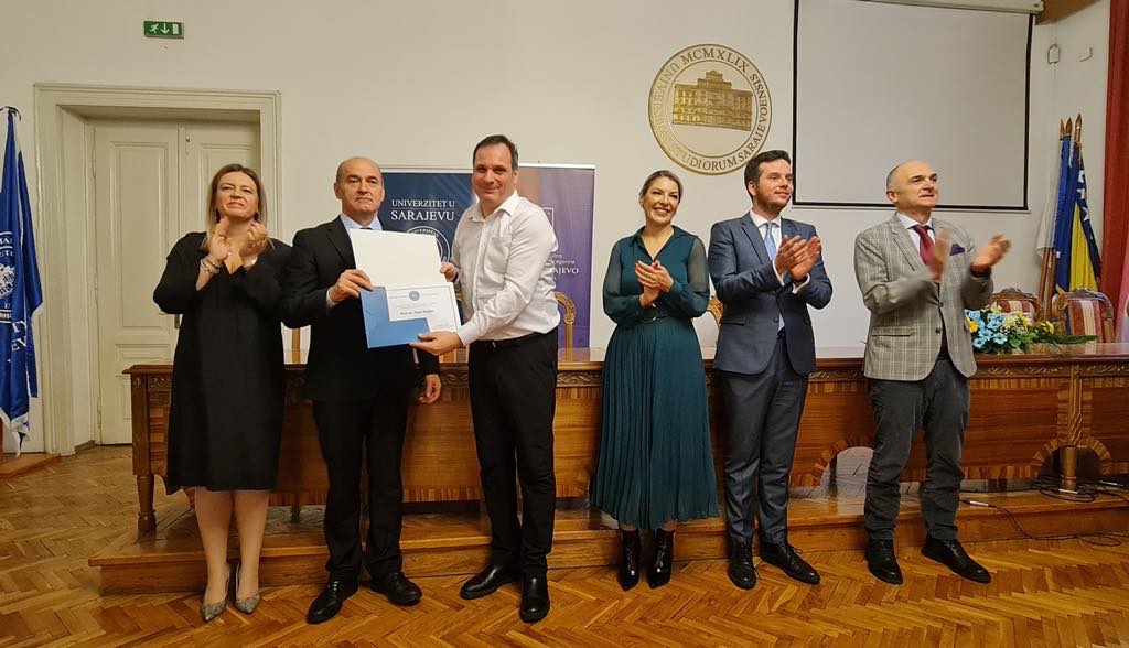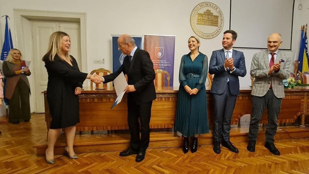U Rektoratu Univerziteta u Sarajevu upriličena je svečana dodjela nagrada akademskom i naučnoistraživačkom osoblju na osnovu rezultata naučnog/umjetničkog rada za 2022. godinu.