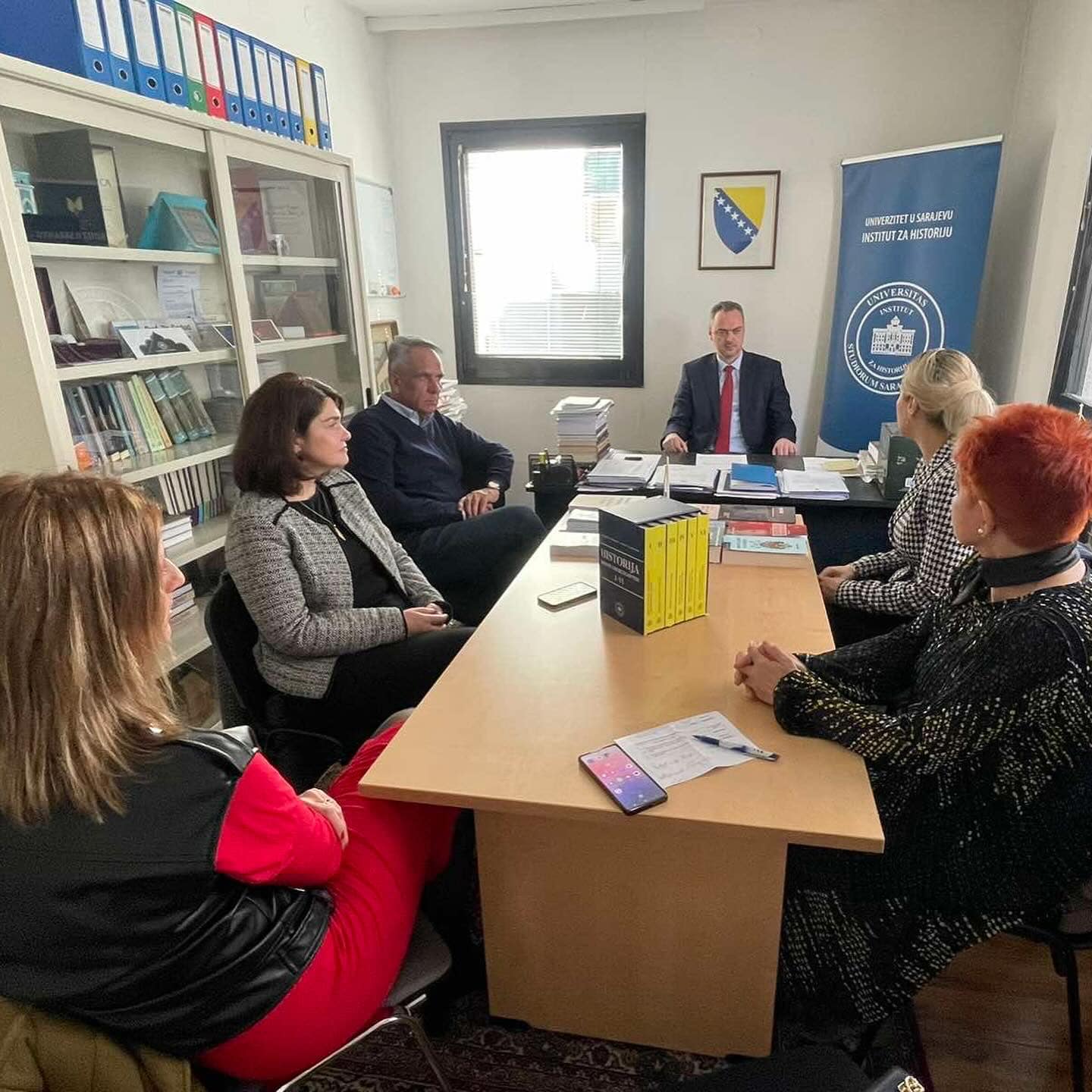 Protekle sedmice, direktor Instituta za historiju dr. Sedad Bešlija primio je u radnu posjetu prof. dr. Adna Mesihović, ministricu za nauku, visoko obrazovanje i mlade u Vladi Kantona Sarajevo, pomoćnicu ministrice mr.sci. Azeminu Njuhović te saradnike ministarstva. Ispred Instituta domaćini su bili i dr. Safet Bandžović i dr. Hana Younis, naučni savjetnici. Direktor Instituta je tokom razgovora upoznao goste s ključnim postignućima Instituta u proteklih šest i po decenija rada. Istakao je da je Institutu potreban dalji razvoj u svim segmentima rada: kadrovskom, infrastrukturnom, projektnom, informaciono-tehnološkom i međunarodnom. U tom smislu ukratko je prezentirao tekuće aktivnosti unutar Instituta. Akcentirano je da Institut potrebuje odvojenu dodatnu podršku za arhivska istraživanja saradnika i izdavačku djelatnost te kapitalne projekte koji su u pripremi. Ministrica je izrazila zadovoljstvo postignutim rezultatima u radu ustanove i iskazala opredjeljenje za uvažavanje specifičnosti humanističkih disciplina kroz buduća zakonska rješenja. Također, istaknula je podršku daljem razvoju ustanove, kao i spremnost za saradnju sa UNSA u procesu rješavanja dugogodišnjeg problema Instituta – smještaja ustanove. „ Bogata historija Instituta kao i institutski naučnoistraživački projekti, te bogat opseg radova koji je objavljen na više jezika i koji su uz to digitalizovani i dostupni širom svijeta putem online platformi su dokaz da Insitut radi na unapređenju i promociji naučno istraživačke djelatnosti, na šta Kanton Sarajevo treba biti ponosan. Ministarstvo Institut vidi kao jednog od ključnih partnera u promociji i razumjevanju identiteta i kulturnog naslijeđa Kantona Sarajevo,“ istakla je ministrica Mesihović. Posjeta je realizirana u sklopu predviđenih redovih posjeta ministrice svim organizacionim jedinicama Univerziteta.