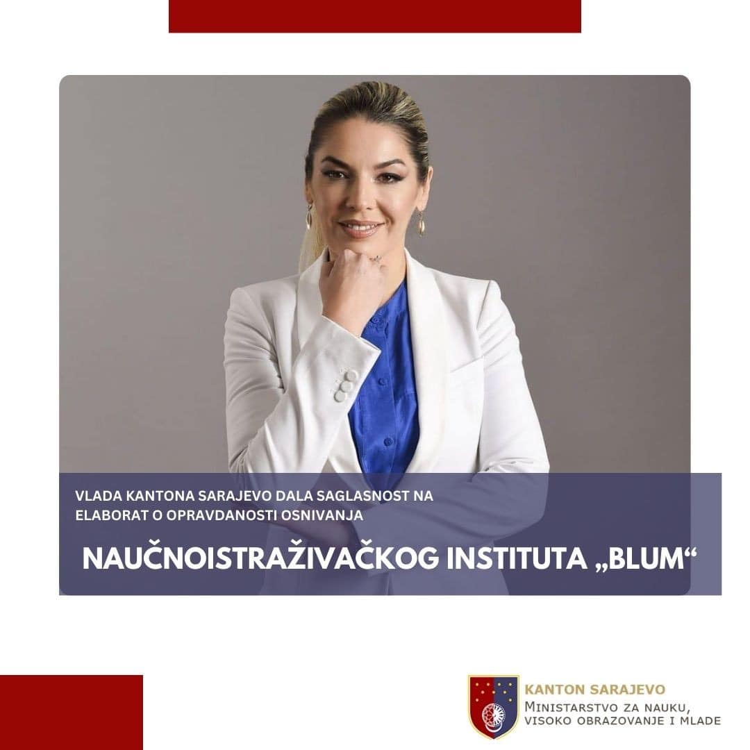 Na prijedlog Ministarstva za nauku, visoko obrazovanje i mlade, Vlada Kantona Sarajevo dala saglasnost na Elaborat o opravdanosti osnivanja Naučnoistraživačkog instituta „Blum“ za računarske nauke i inženjerstvo, umjetnu inteligenciju i autonomne robotske sisteme, te ga je uputila u skupštinsku proceduru. “Uzimajući u obzir prepoznatu potrebu za jačanjem naučnoistraživačkog sektora u Kantonu Sarajevo, kao i na nivou države Bosne i Hercegovine, osnivanje Instituta u Sarajevu je od izuzetne važnosti kako bi se adekvatno odgovorilo na aktuelne tehnološke izazove s kojima se suočava Bosna i Hercegovina. Kroz svoju djelatnost, Institut će doprinositi akademskom i naučnom razvoju, postat će i aktivan sudionik u ekonomskom razvoju Kantona Sarajevo, kao i BiH. Patenti koji proizlaze iz istraživanja Instituta služit će kao ključni pokretači u razvoju novih industrijskih grana i tehnologija, čime se jača lokalna ekonomija i otvaraju nova tržišta,” navela je ministrica prof. dr. Adna Mesihović u obrazloženju Odluke o osnivanju. Nadahnuti vizijom i naslijeđem Emerika Bluma, čija je uprava u Energoinvestu, jedne od najvećih bosanskohercegovačkih kompanija, bila simbol privrednog razvoja i izvrsnosti, misija Instituta će biti nastaviti tradiciju tehnološke inovativnosti i društvenog doprinosa. Osnivanje Instituta za računarske nauke i inženjerstvo, umjetnu inteligenciju (AI) i autonomne robotske sisteme je korak ka tehnološkoj evoluciji i obnovi nacionalnog duha i nadahnuća za Bosnu i Hercegovinu! 🇧🇦 Institut će ne samo pratiti globalne trendove, već će aktivno doprinijeti istraživanjima u različitim aplikativnim oblastima AI-a. Fokusirat će se na ključna područja poput zdravstva, energetike, obrazovanja i proizvodnje, te mnogih drugih gdje AI može imati značajan utjecaj na istraživanje, inovacije i unapređenje procesa. Vjerujemo da će Skupština Kantona Sarajevo prepoznati značaj ovog Instituta i dati zeleno svjetlo za njegovo osnivanje!