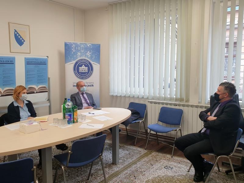 Prilikom posjete ministrice i rektora Institutu za jezik, direktor Instituta dr. Alen Kalajdžija je izrazio zadovoljstvo zbog prilike da predstavi ovaj institut, te prezentira podatke o organizacijskoj strukturi Instituta, kadrovskim potencijalima i ključnim projektima.