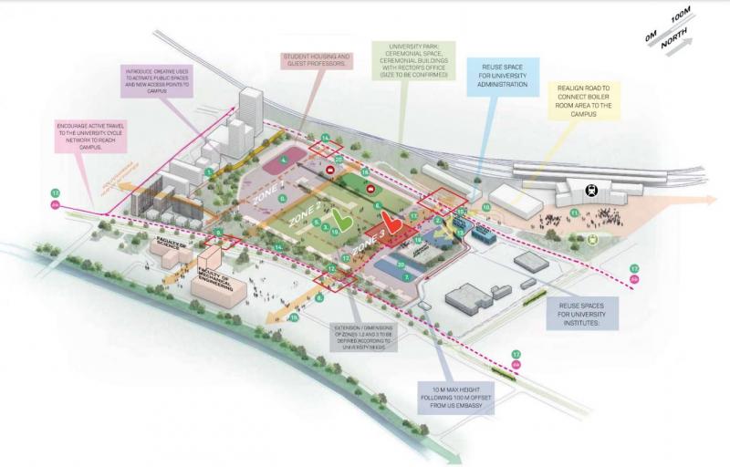 Strategija koja će se razviti uz tehničku pomoću ERI-a sastojat će se od obnove nekadašnje kasarne u centru Sarajeva, uz izgradnju fakulteta, instituta, drugih objekata te prateće infrastrukture, što će rezultirati stvaranjem visokokvalitetnog prostora kampusa. Time će se osigurati bolji objekti za studente i akademsko osoblje, kao i efektivna saradnja fakulteta, akademija i istraživačkih instituta.