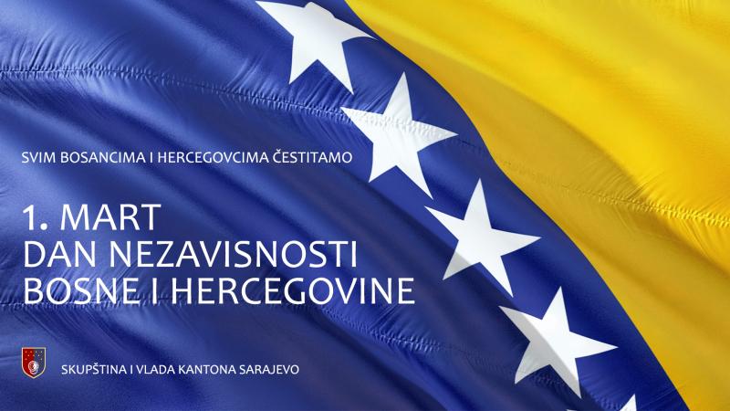 U povodu 1. marta - Dana nezavisnosti Bosne i Hercegovine čelnici Skupštine i Vlade Kantona Sarajevo te zastupnici i ministri, uputili su čestitku svim građanima BiH: