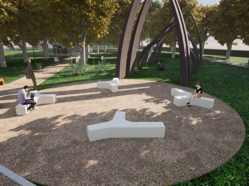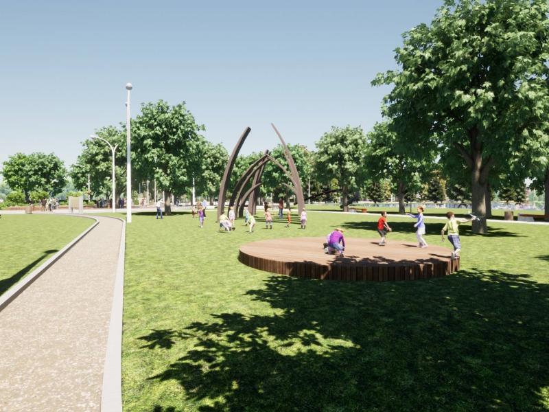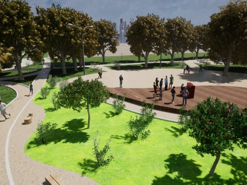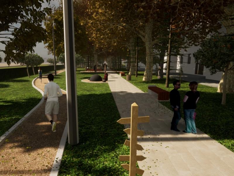 Multifunkcionalna pozornica/amfiteatar na otvorenom, trim staza sa teretanom za vježbanje, pješačke staze sa nekoliko posebnih, tematski uređenih površina i urbanim mobilijarom, te hortikulturno uređene zelene površine, sadržaji su koji su predviđeni glavnim projektom.