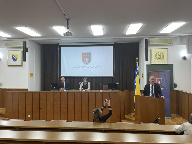Prije pristupanju potpisivanja, održana je press konferencija na kojoj su se prisutnim predstavnicima medija obratili premijer Kantona Sarajevo Edin Forto, ministrica za nauku, visoko obrazovanje i mlade KS, prof.dr. Aleksandra Nikolić i prorektor za naučno-istraživački rad Univerziteta u Sarajevu, prof.dr. Mirza Dautbašić.