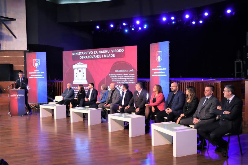 “Kada je riječ o aktivnostima na poboljšanju studentskog standarda, omogućeno je da na svim IKT studijskim programima UNSA svi studenti studiraju na račun budžeta KS, porodice koje školuju troje i više djece oslobođene plaćanja školarine, stipendirani su doktorski studij najboljih studenata dobitnika „Zlatne značke“, stipendiramo 80 studenata nastavničkih studijskih programa...”, podsjetio je, između ostalog, premijer Forto.