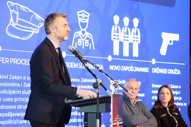 Među aktivnostima Ministarstva unutrašnjih poslova naveo je donošenje novog Zakona o unutrašnjim poslovima i Zakona o policijskim službenicima kojim je uveden princip meritornosti odnosno struke za zapošljavanje u MUP, a depolitizirane su i funkcije komesara i članova nadzornih tijela te stvoreni uslovi za fer i poštenu proceduru prijema policijskih službenika.