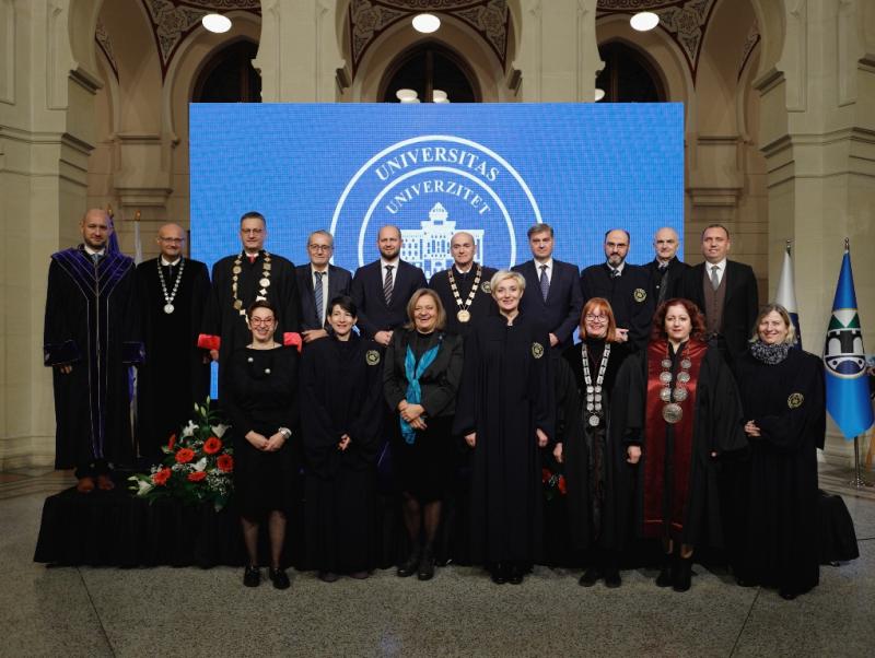 Na Svečanoj sjednici Senata Univerziteta u Sarajevu obratili su se akademik, prof.dr. Muris Čičić, predsjednik Akademije nauka i umjetnosti BiH, prof.dr. Zoran Tomić, rektor Sveučilišta u Mostaru u ime Rektorske konferencije/zbora BiH, Haris Bašić, zamjenik gradonačelnice Grada Sarajeva, predsjedavajući SKS Okerić, ministrica Nikolić i prof.dr. Denis Zvizdić, predsjedavajući Predstavničkog doma Parlamentarne skupštine BiH.