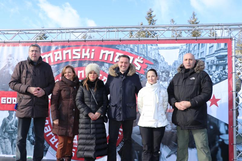 “Prije 80 godina, u noći izmedu 27. i 28. januara po dubokom snijegu i velikoj hladnoći, kolona boraca 1. proleterske brigade, ali i žena i djece, nakon više od 18 sati pješačenja preko Igmana stigla je na slobodnu teritoriju Foče. Bilo je to pješačenje za slobodu, od okupatorskog obruča fašističke ideologije. Ono što su stekli tada, stavljeno je na test 50 godina kasnije, u podnožju ove iste planine, novi Ijudi, žene i djeca borili su se za isto ono dostojanstvo, protiv iste fašističke ideologije, za jedan grad i istu domovinu. Bila je to borba za nove naraštaje, našu djecu i njihovu slobodu, koja, nadamo se neće biti ugrožena nikada više”, rekao je ministar Osmanović.