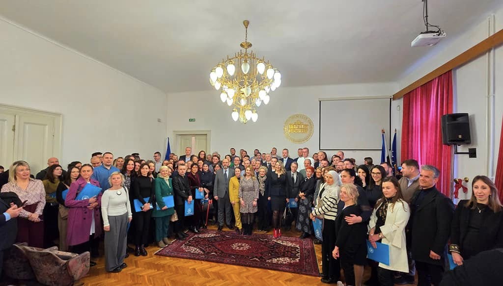 Na Univerzitetu u Sarajevu jučer su dodijeljene nagrade akademskom i naučno-istraživačkom osoblju za izuzetne rezultate u naučnom i umjetničkom radu tokom 2023. godine. Ministarstvo za nauku, visoko obrazovanje i mlade KS osiguralo je 80.000 KM za nagradu najboljim istraživačima, naučnicima i umjetnicima, potvrđujući svoju posvećenost razvoju akademske zajednice i jačanju istraživačkog sektora. Ministrica prof. dr. Adna Mesihović istakla je važnost prepoznavanja i poticanja izvrsnosti: “Proslavili smo izuzetne uspjehe sjajnih pojedinca koji nisu samo ponos našeg Kantona i države, već i inspiracija budućim generacijama. Njihov rad i posvećenost istraživanjima, inovacijama i umjetnosti potvrđuju koliko je važno vjerovati u vlastite ideje, istrajavati u istraživanjima i hrabro koračati naprijed. Svim dobitnicima, još jednom, upućujem iskrene čestitke na izvanrednim dostignućima, uz želju da im ovo priznanje bude podsticaj za daljnje istraživanje, inovacije i oblikovanje naučne i umjetničke budućnosti Kantona Sarajevo.” Ministarstvo će nastaviti ulagati u znanje, nauku i umjetnost, stvarajući bolje uslove za razvoj talentovanih pojedinaca i akademske zajednice.